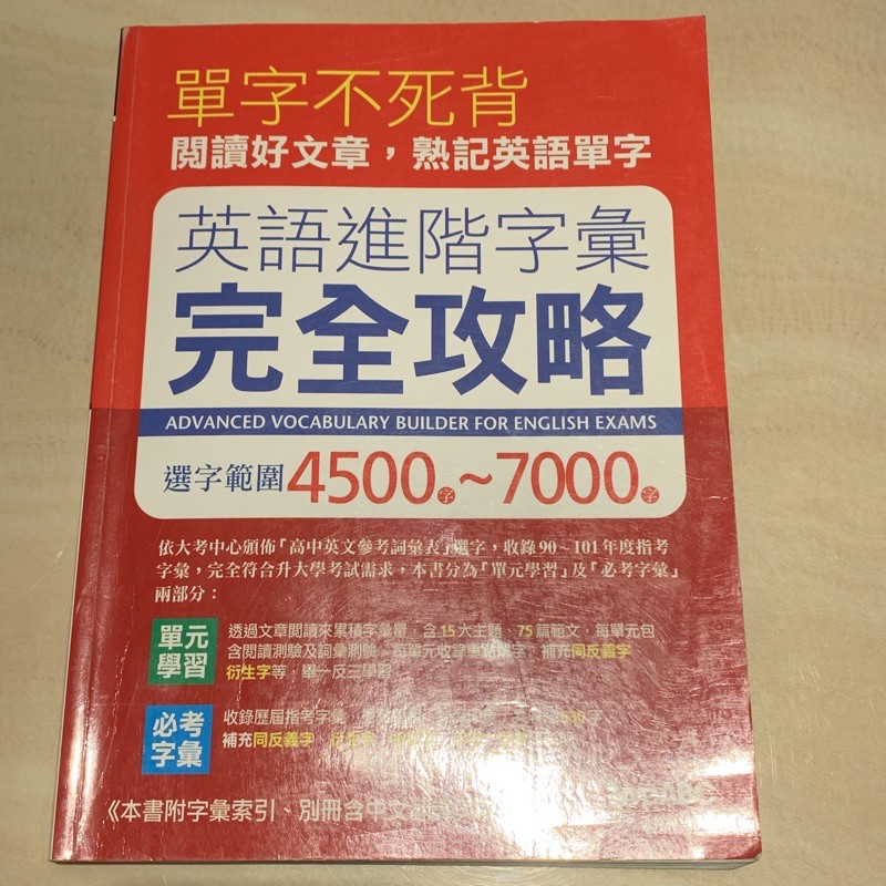 以滑鼠點擊 或 ,以便連結到中文或英文的 線上字典 ,查看該單字的詳細解說或正確發音。. Over half of these words are nouns,about a quarteradjectives,and about a seventh verbs;the rest is made up of exclamations,conjunctions,prepositions, suffixes,etc. To this may be added around 9,500 derivative words included as subentries. 4.每个英文对等词皆附上一个汉英对照的例句,说明用法,特别是搭配词的应用,又搭配相同的同义对等词,表示可互换。例如:「巅峰」的英文有zenith、summit、apex,共用一个例句joe reached the apex of his career when he was thirty.,句中的apex可用zenith或summit代换。 全國高中生單字比賽冠軍的私密筆記本,指考、學測、統測、英檢滿分神之捷徑 英語2000核心單字12週特訓班,核心單字語音檔 背單字,不費力, 從背「最好用」、「最會考」的單字開始, 才最省力,也最有效益!
